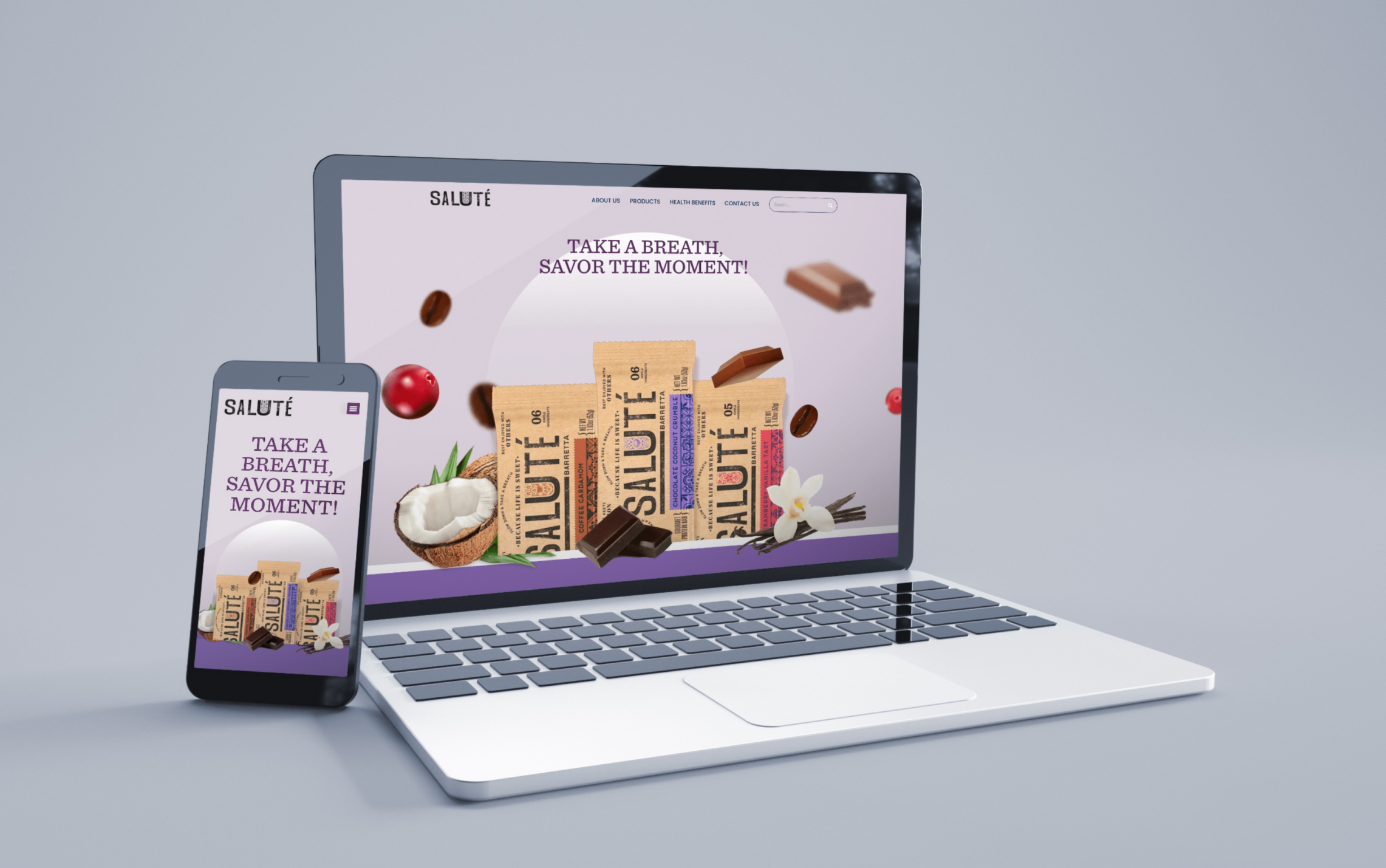 With an existing logo already in place, our team dedicated time to thoroughly study the Salute brand and its distinct position within the saturated healthy snack market. What made Salute bars different from any other healthy snack bar? Who was the brand’s target audience? Through research and analysis, our team of brand specialists and copywriters worked collaboratively with the client to create a powerful brand strategy using powerful creatives and impactful messaging.