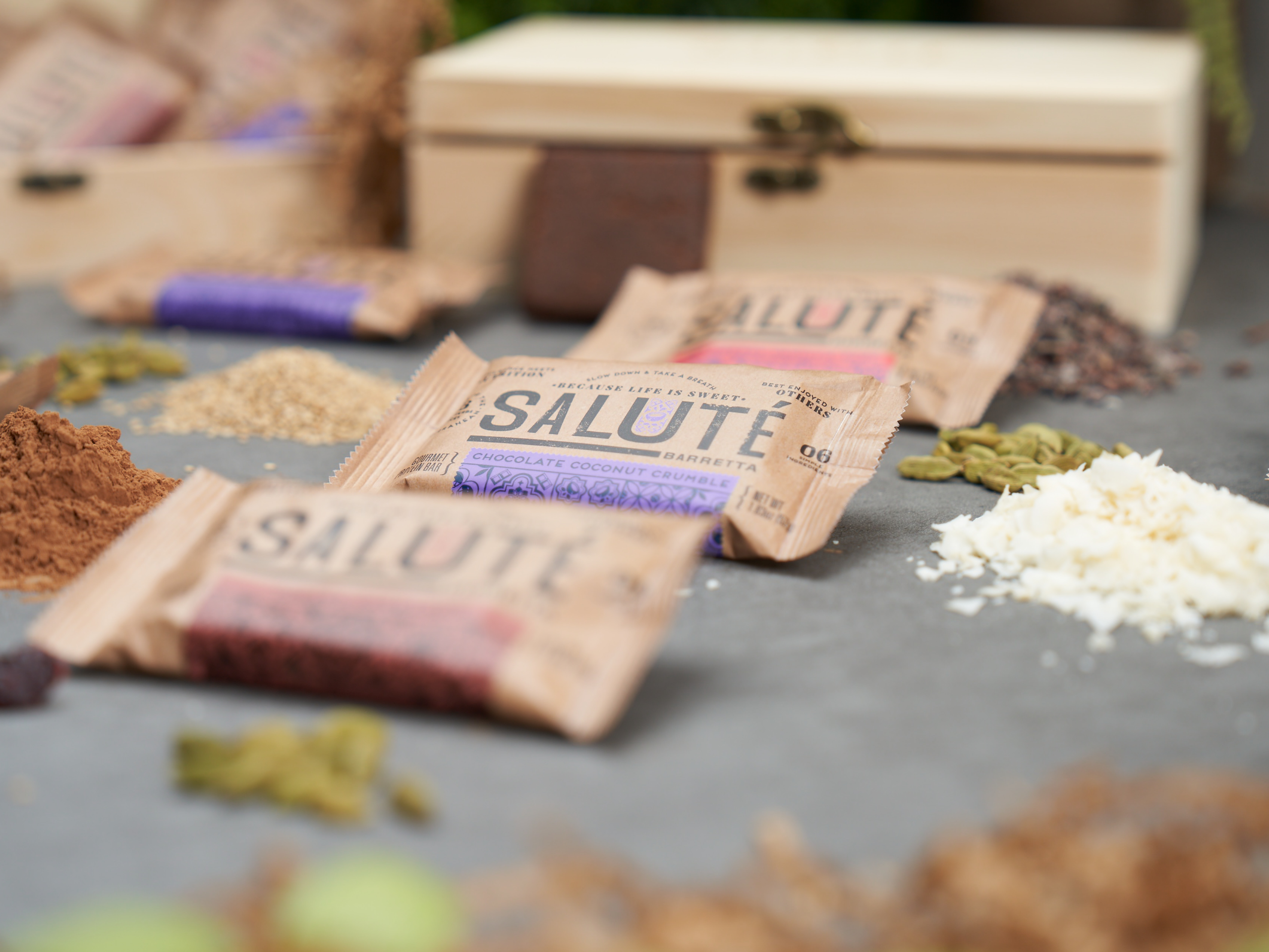 Salute Gourmet Nutritious Bars are allergy-friendly and plant-based snacks made to fit people’s busy lifestyles. These indulgent, gourmet bars are not only nutritious but demand to be enjoyed, shared, and experienced. They were created to prove that eating well goes beyond nutritional facts like fats and fiber and that convenience is not just about speed. To successfully enter the competitive healthy snack bar market, Salute turned to TriVision for help.